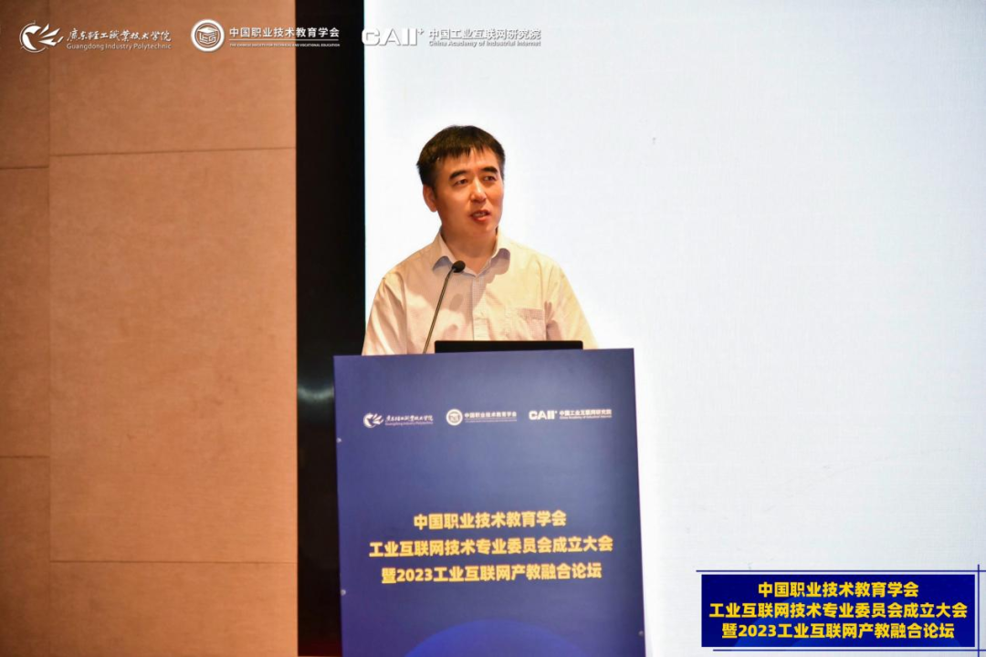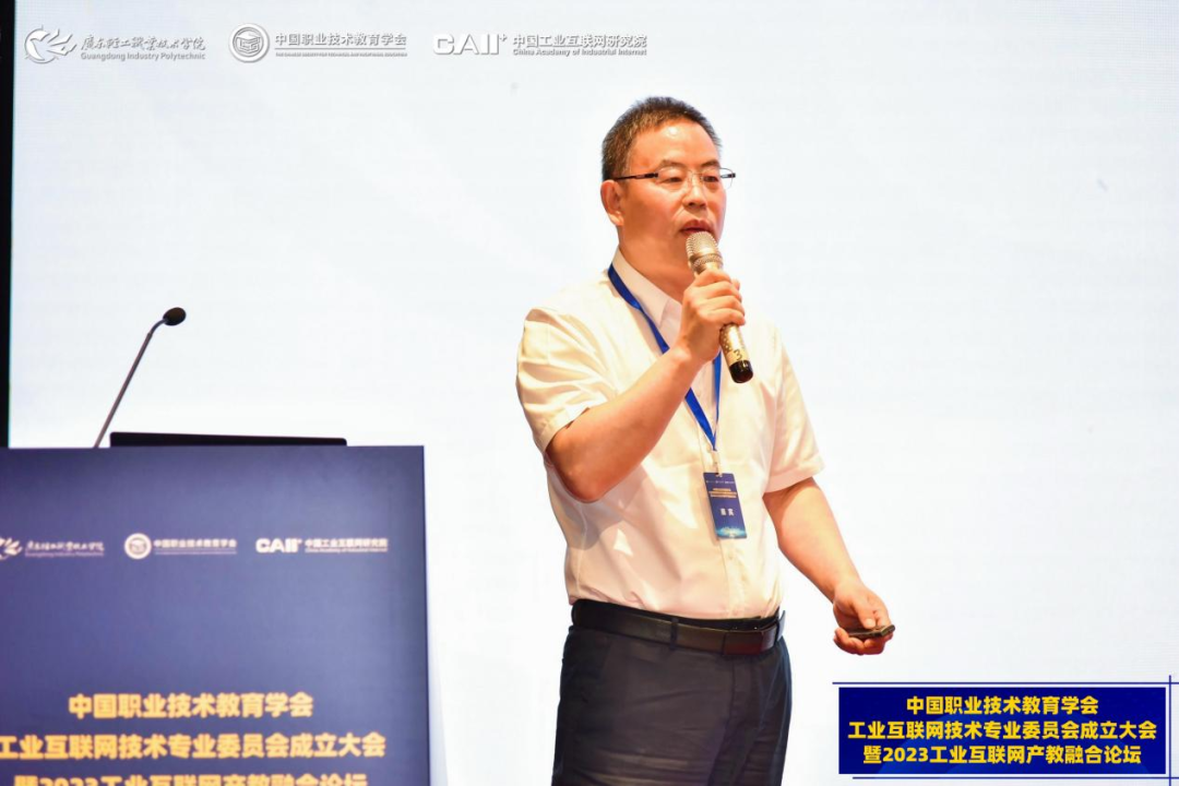 5月16-17日,中國職業(yè)技術(shù)教育學(xué)會工業(yè)互聯(lián)網(wǎng)技術(shù)專業(yè)委員會成立大會暨2023工業(yè)互聯(lián)網(wǎng)產(chǎn)教融合論壇在廣東佛山順利召開。中國職業(yè)技術(shù)教育學(xué)會會長、教育部原副部長魯昕,教育部職業(yè)教育與成人教育司綜合改革處二級調(diào)研員李紅東,廣東省教育廳二級巡視員吳艷玲,工業(yè)和信息化部教育與考試中心張任,廣東輕工職業(yè)技術(shù)學(xué)院黨委書記杜安國、校長盧坤建,中國工業(yè)互聯(lián)網(wǎng)研究院總工程師王寶友,中國職教學(xué)會科技成果轉(zhuǎn)化工作委員會副主任兼秘書長、中國科學(xué)院計算技術(shù)研究所研究員田霖等出席。來自全國職業(yè)院校、科研院所及企業(yè)的近200名會員單位代表線下參會,3000余人線上參會。