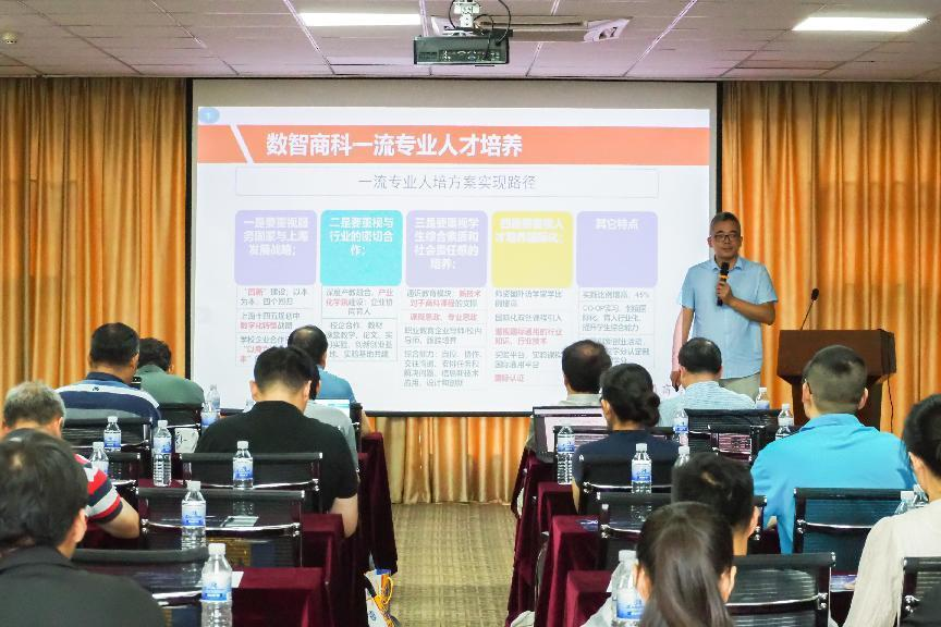 上海商學(xué)院商務(wù)信息學(xué)院院長蔣傳進(jìn)以《數(shù)字商業(yè)環(huán)境下,應(yīng)用復(fù)合型人才的培養(yǎng)》為中心,介紹了上海商學(xué)院商務(wù)信息學(xué)院特色專業(yè)的建設(shè)情況以及人才培養(yǎng)方案。
